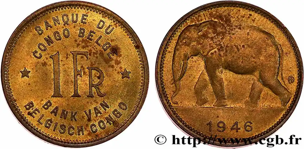 CONGO BELGE 1 Franc éléphant 1946 fwo_764824 Monde Commande En Gros