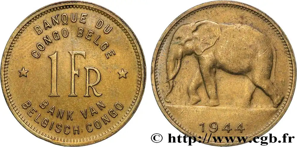 Commander Vite CONGO BELGE 1 Franc éléphant 1944 fwo_821720 Monde