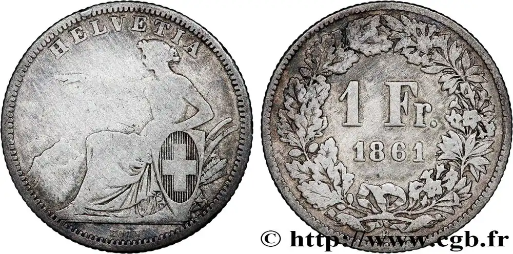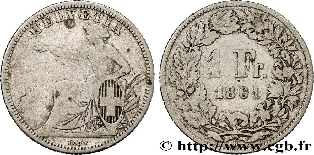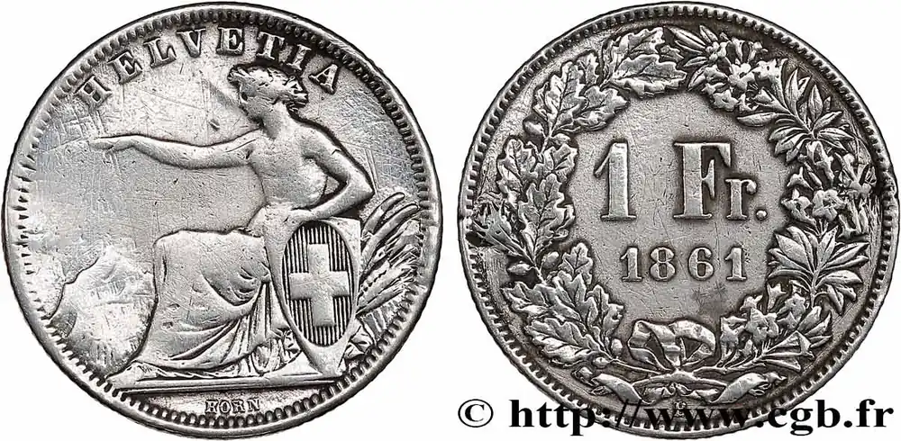 SUISSE 1 Franc Helvetia assise 1861 Berne fwo_744180 Monde En Vogue
