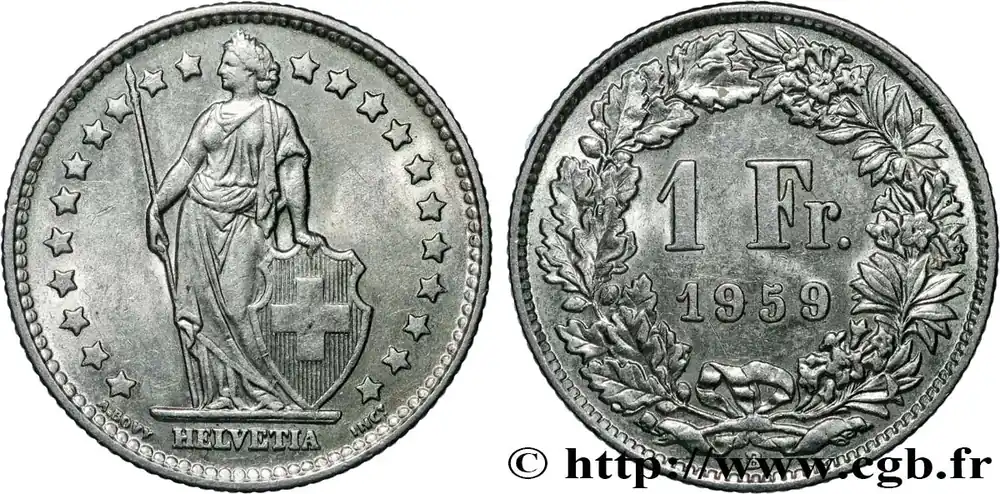 Nouveauté SUISSE 1 Franc Helvetia 1959 Berne – B fwo_838963 Monde