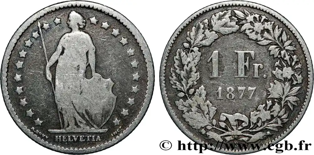 Livraison Gratuite SUISSE 1 Franc Helvetia 1877 Berne fwo_846964 Monde