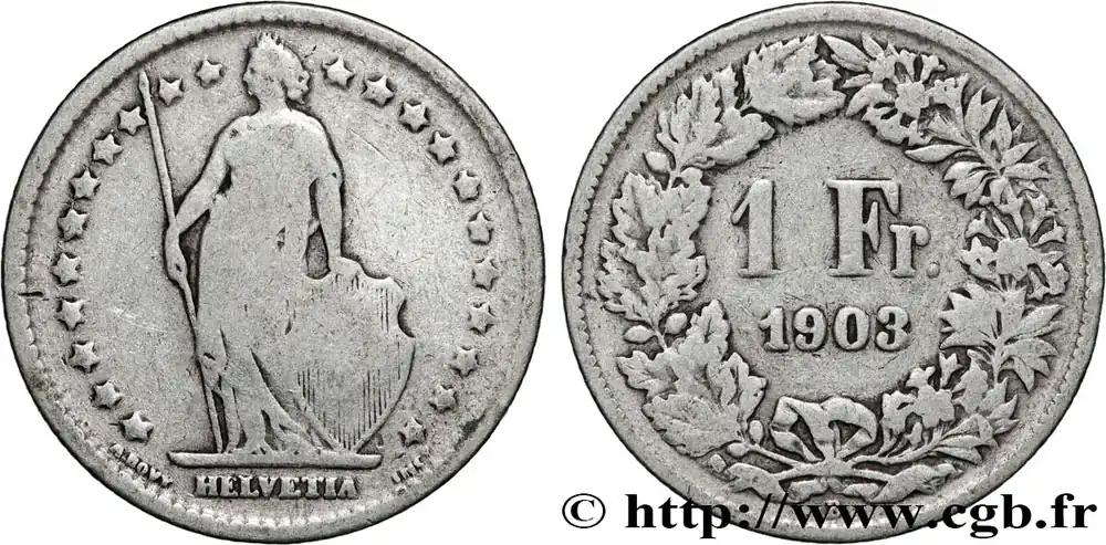 Livraison Mondiale SUISSE 1 Franc Helvetia 1903 Berne fwo_839346 Monde