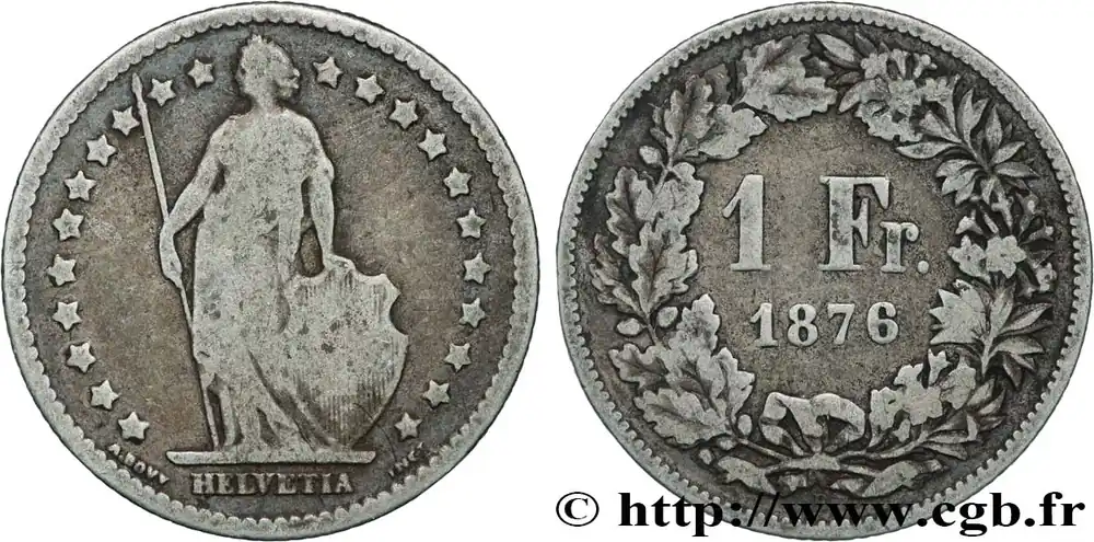 Meilleur Choix SUISSE 1 Franc Helvetia 1876 Berne fwo_868458 Monde