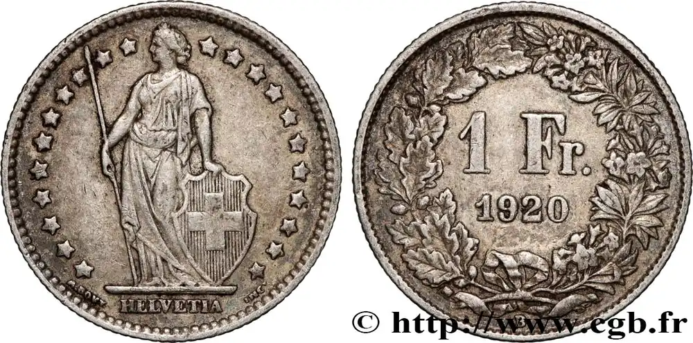 Nouveauté SUISSE 1 Franc Helvetia 1920 Berne fwo_889394 Monde