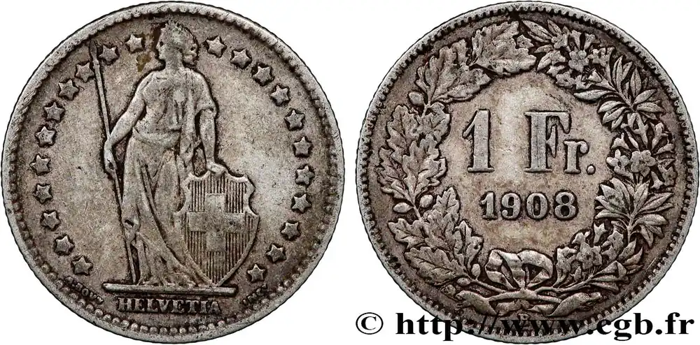 Offre Spéciale SUISSE 1 Franc Helvetia 1908 Berne fwo_789492 Monde
