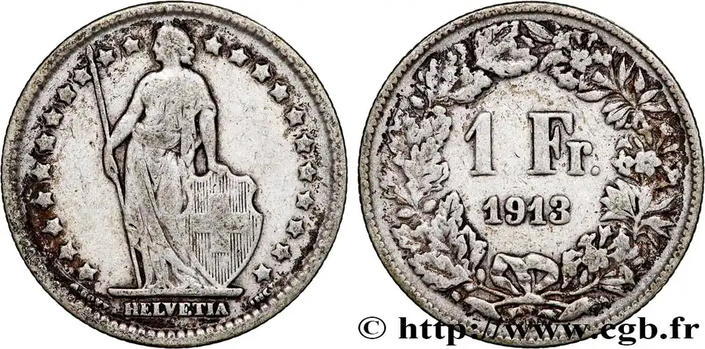 Petit Prix SUISSE 1 Franc Helvetia 1913 Berne fwo_789644 Monde