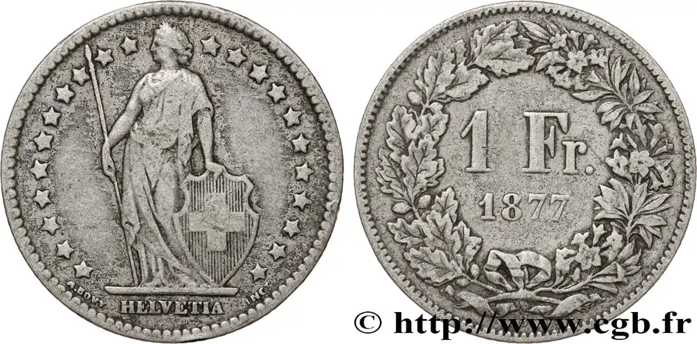 Populaire SUISSE 1 Franc Helvetia 1877 Berne fwo_812475 Monde