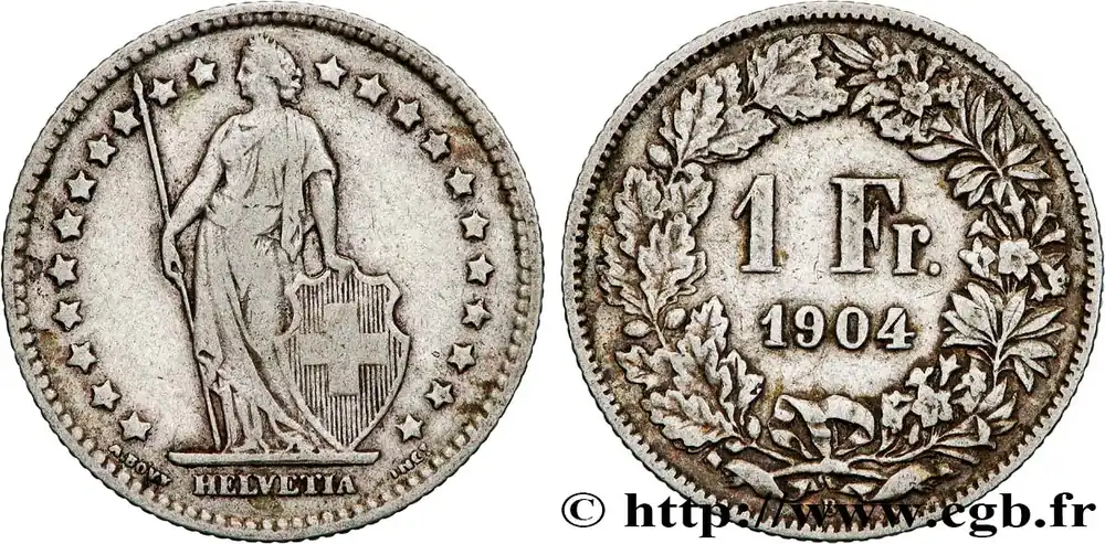 Offre Exclusive SUISSE 1 Franc Helvetia 1904 Berne fwo_817311 Monde