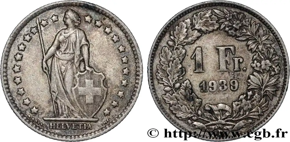 Petit Prix SUISSE 1 Franc Helvetia 1939 Berne fwo_818122 Monde