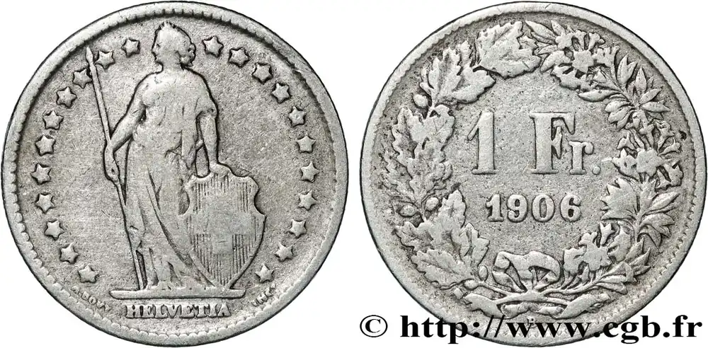 Nouvelle Collection SUISSE 1 Franc Helvetia 1906 Berne fwo_821610 Monde