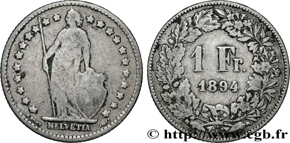 Offre Exclusive SUISSE 1 Franc Helvetia 1894 Paris – A fwo_868768 Monde