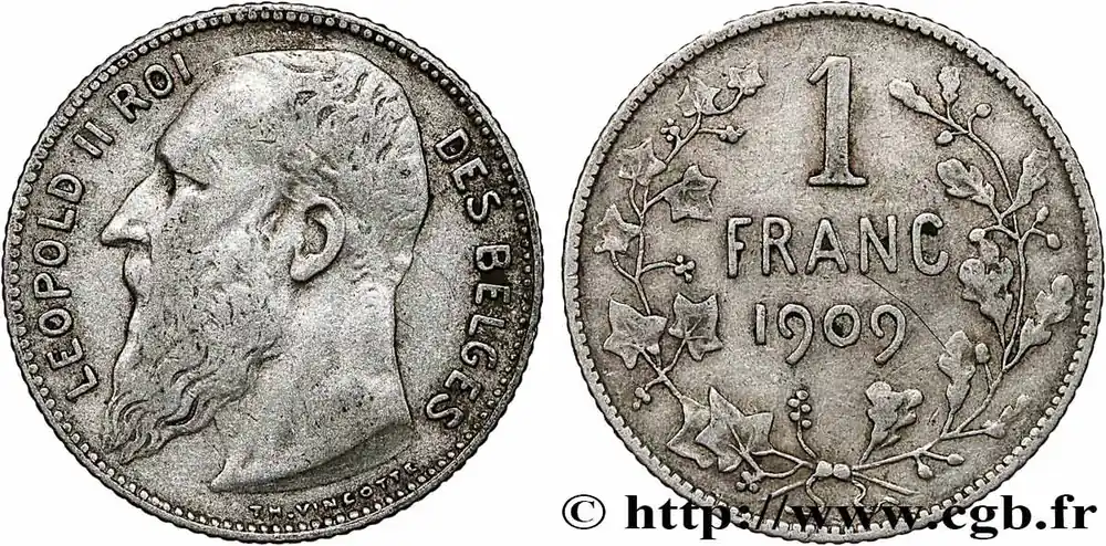 BELGIQUE 1 Franc Léopold II légende française 1909 fwo_793106 Monde Bon Plan