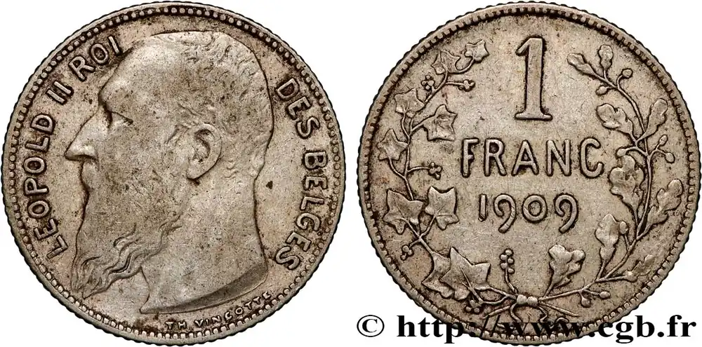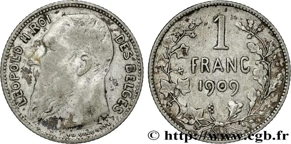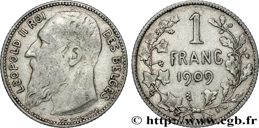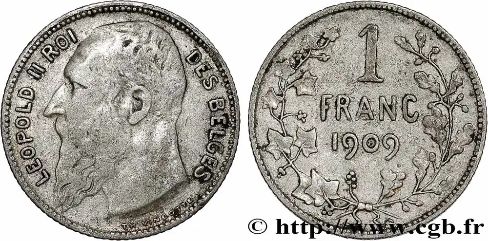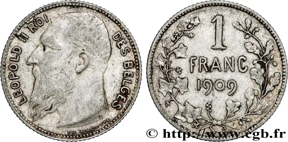 BELGIQUE 1 Franc Léopold II légende française 1909 fwo_853550 Monde Nouvel Arrivage