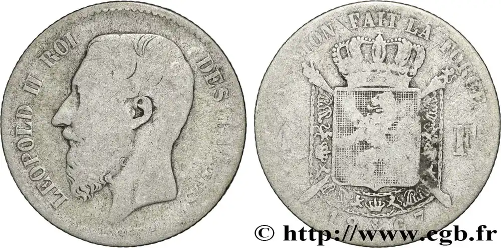 Certifié BELGIQUE 1 Franc Léopold II légende française 1867 fwo_847968 Monde