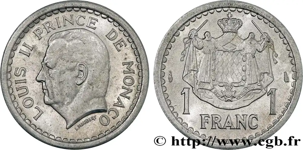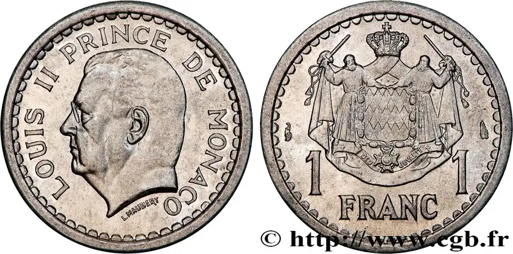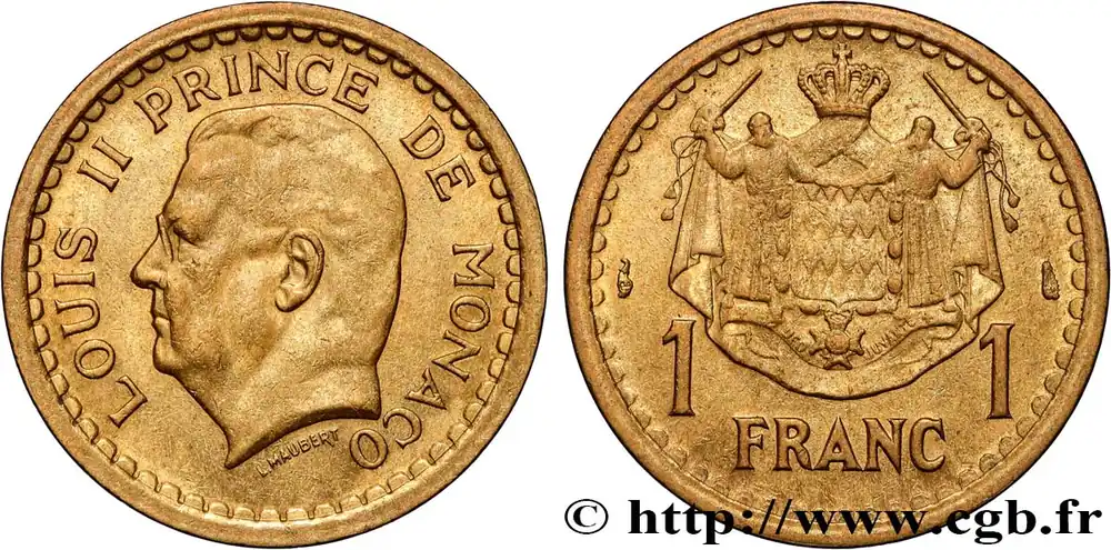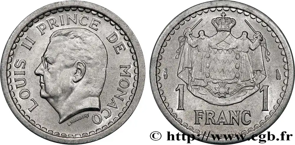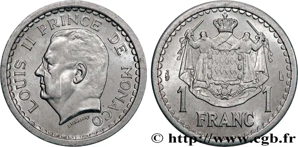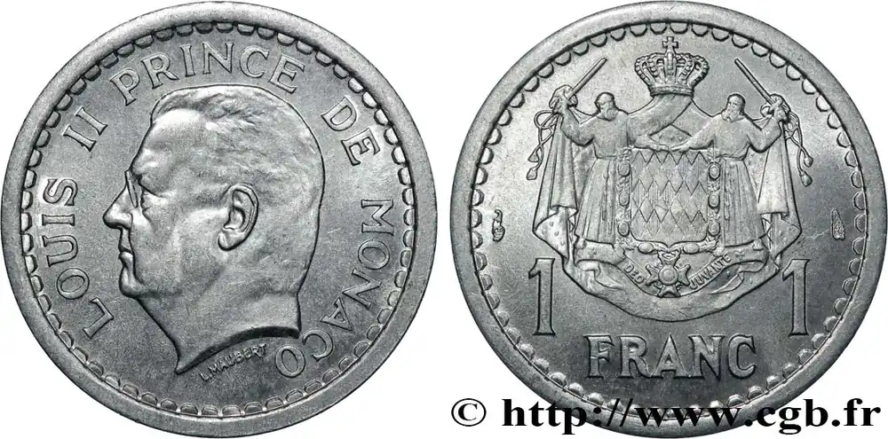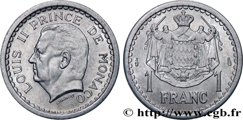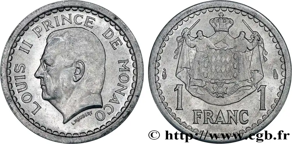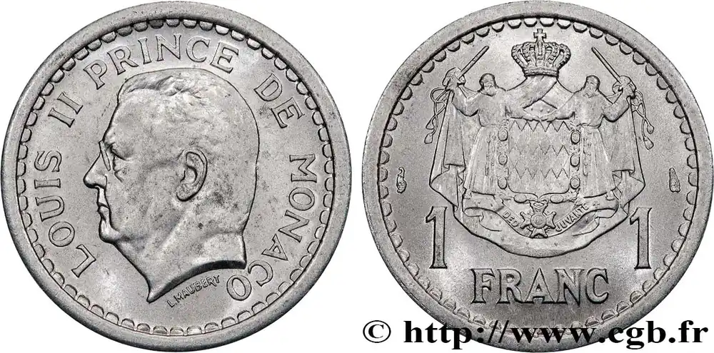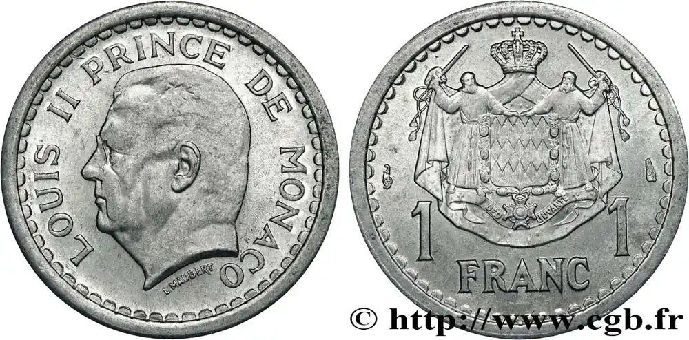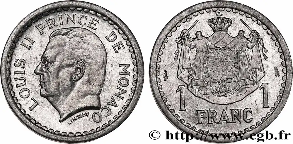 MONACO 1 Franc Louis II (1943) Paris fwo_736598 Monde Garantie Incluse