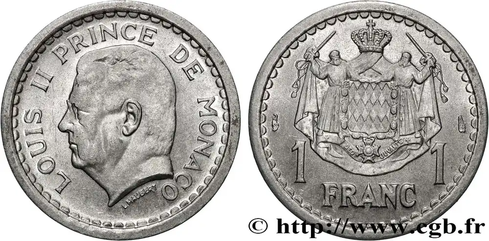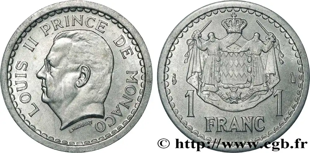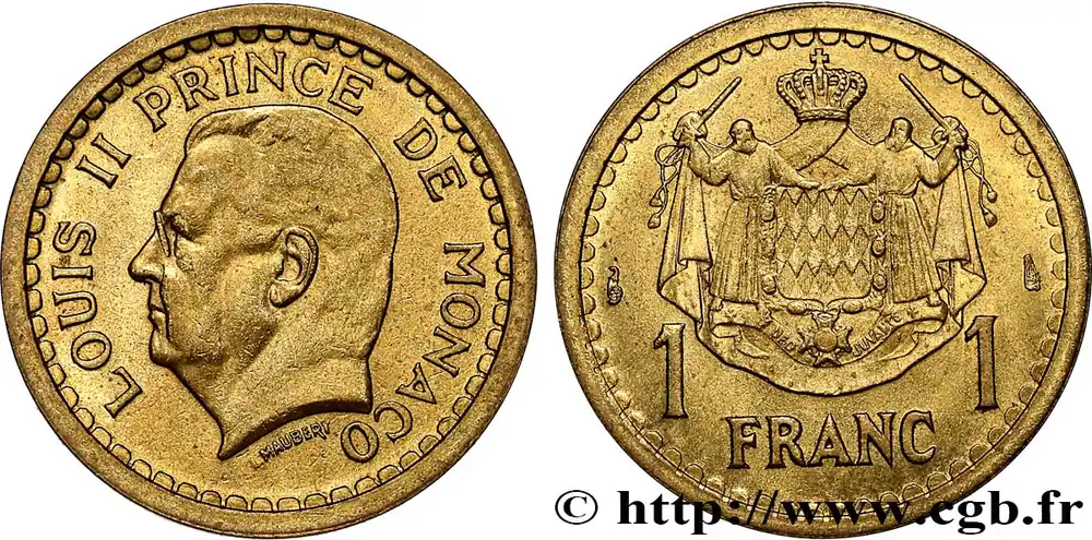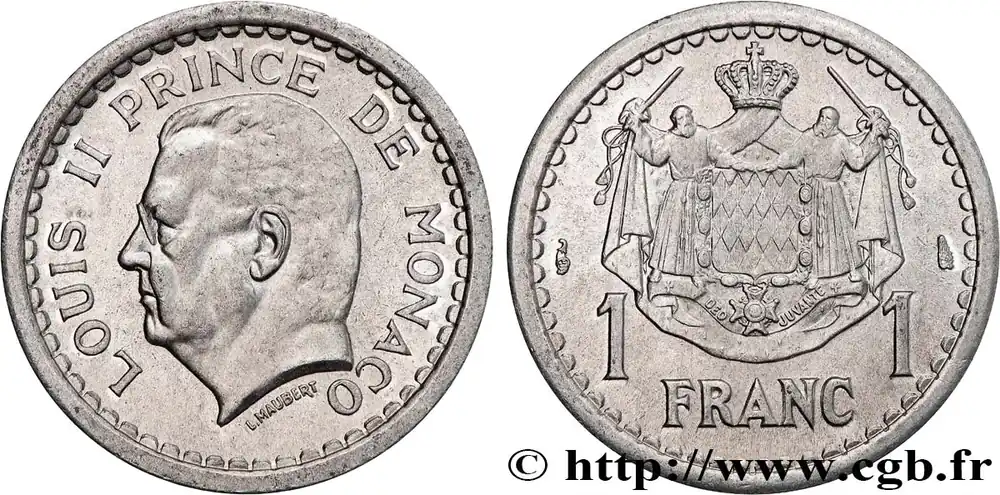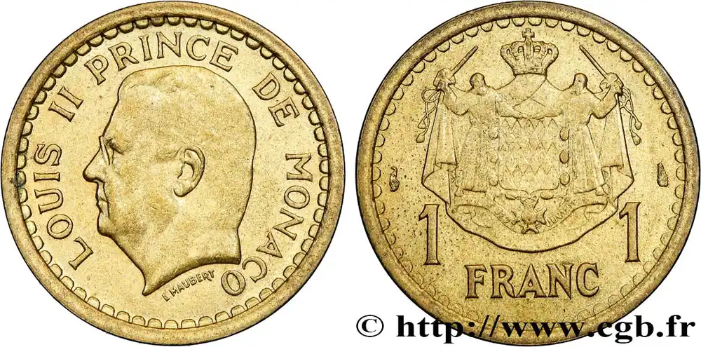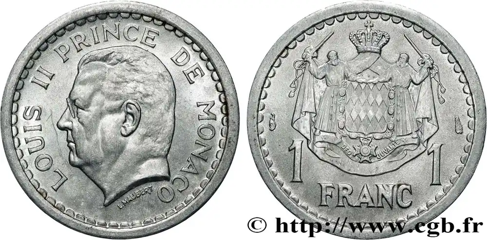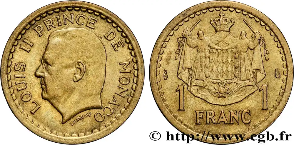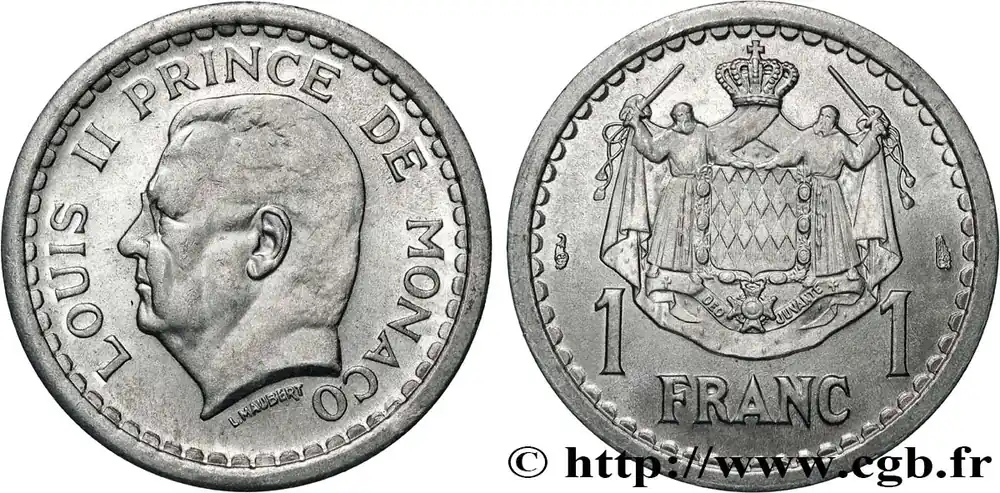 MONACO 1 Franc Louis II 1943 Paris fwo_840265 Monde Bon Plan