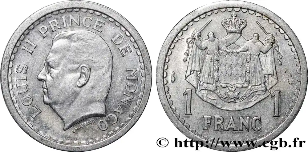 MONACO 1 Franc Louis II (1943) Paris fwo_736607 Monde Garantie Incluse