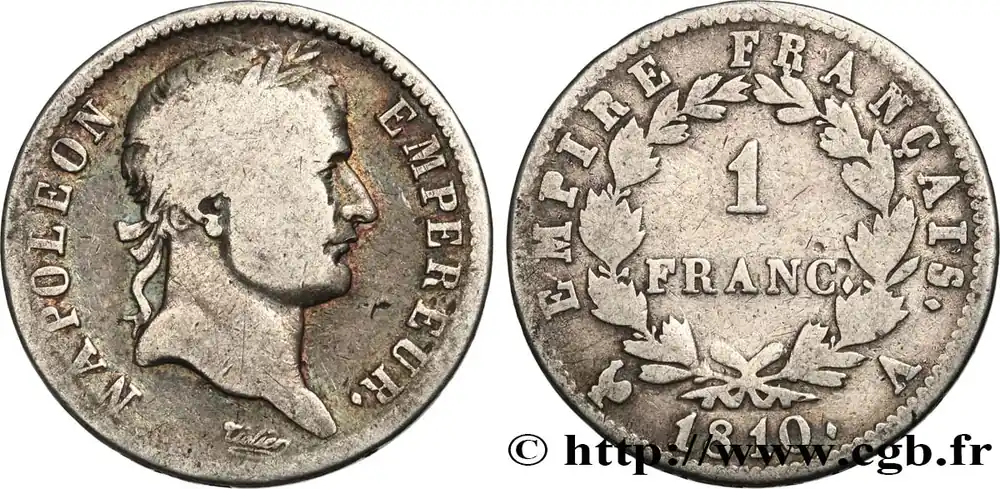 1 franc Napoléon Ier tête laurée, Empire français 1810 Paris F.205/12 fmd_584120 Modernes Meilleure Vente