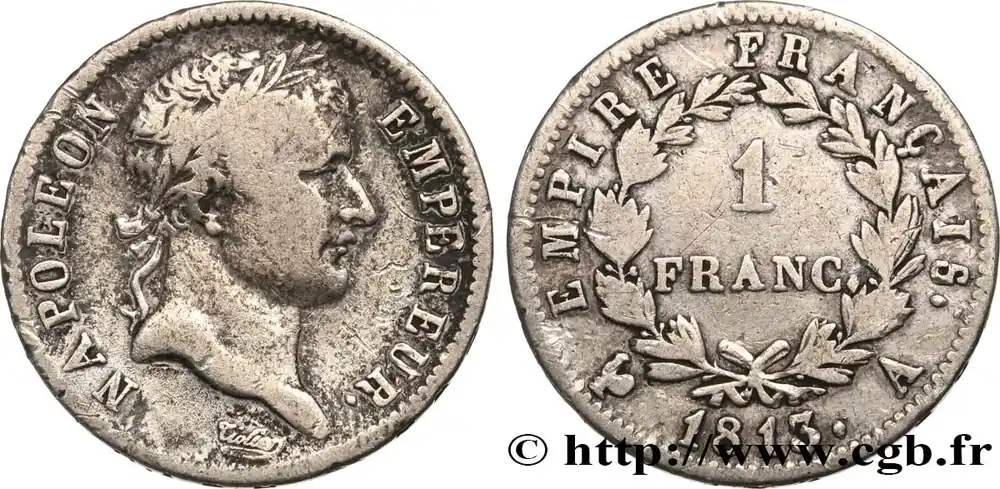 1 franc Napoléon Ier tête laurée, Empire français 1813 Paris F.205/58 fmd_587298 Modernes Top Vente