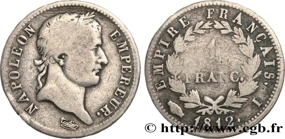 1 franc Napoléon Ier tête laurée, Empire français 1812 Rouen F.205/43 fmd_586247 Modernes Prix Réduit