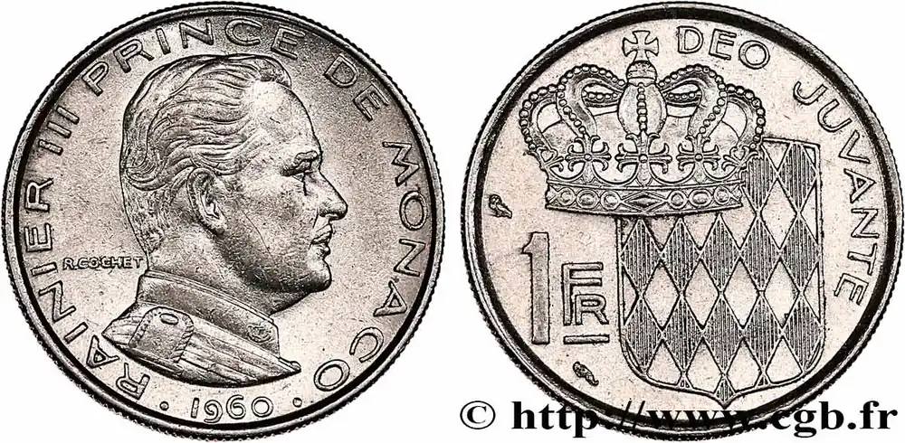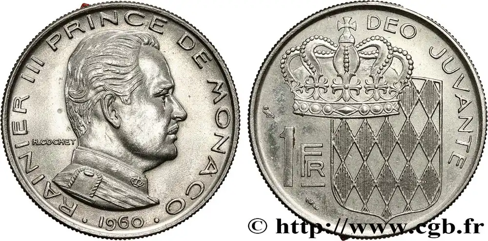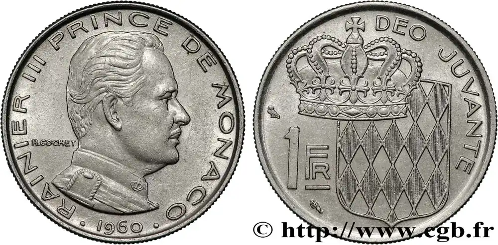 MONACO 1 Franc Rainier III 1960 Paris fwo_789148 Monde Petit Prix