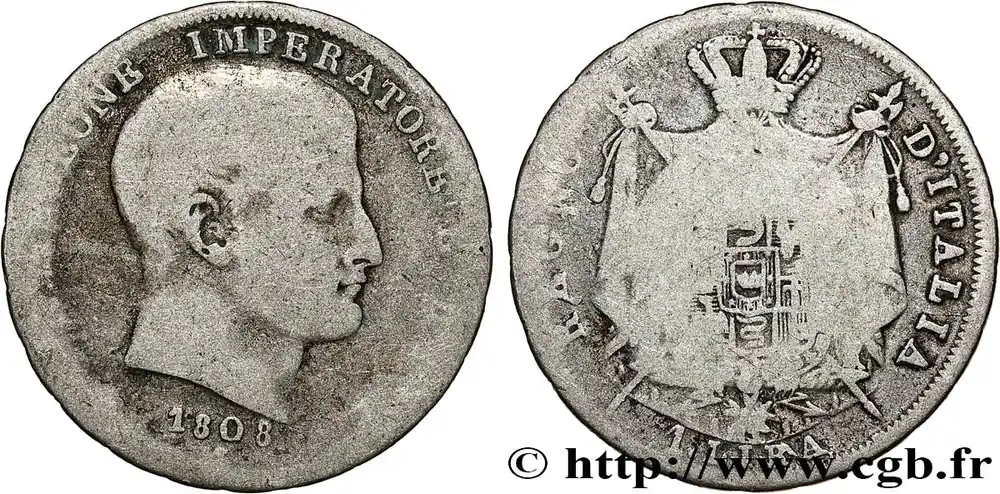 ITALIE – ROYAUME D’ITALIE – NAPOLÉON Ier 1 Lira 1808 Milan fwo_787975 Monde Réduction