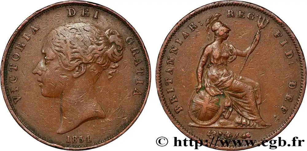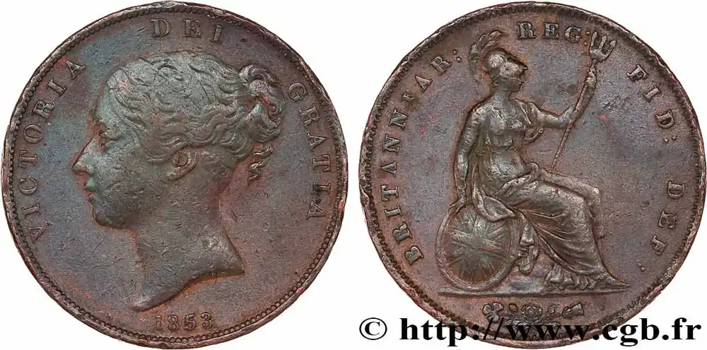 Seulement Aujourd’hui ROYAUME-UNI 1 Penny Victoria “tête jeune” 1853 fwo_834431 Monde