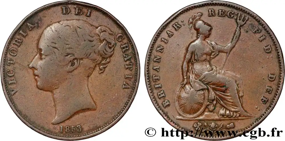 ROYAUME-UNI 1 Penny Victoria “tête jeune” 1853 fwo_834053 Monde Prix Bas