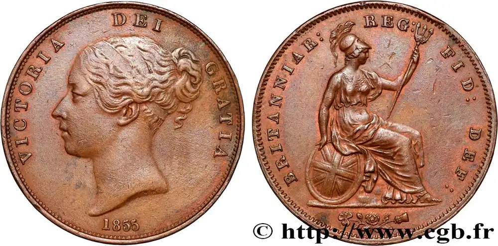 ROYAUME-UNI 1 Penny Victoria “tête jeune” 1855 fwo_761155 Monde Certifié
