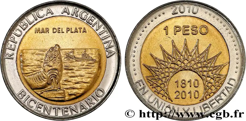 ARGENTINE 1 Peso bicentenaire de la Révolution de Mai : Mar del Plata / symbole du Bicentenaire 2010 fwo_749572 Monde Authentique