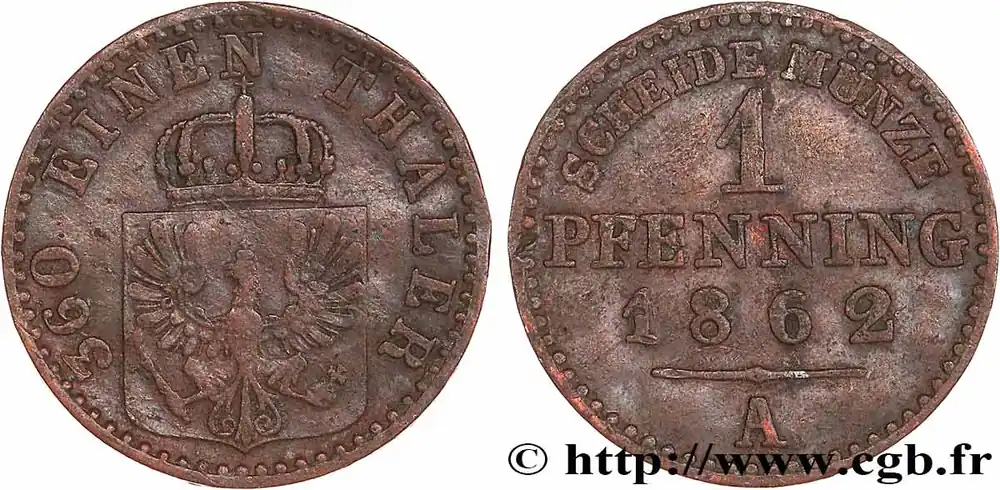 1 Pfenninge Royaume de Prusse écu à l’aigle