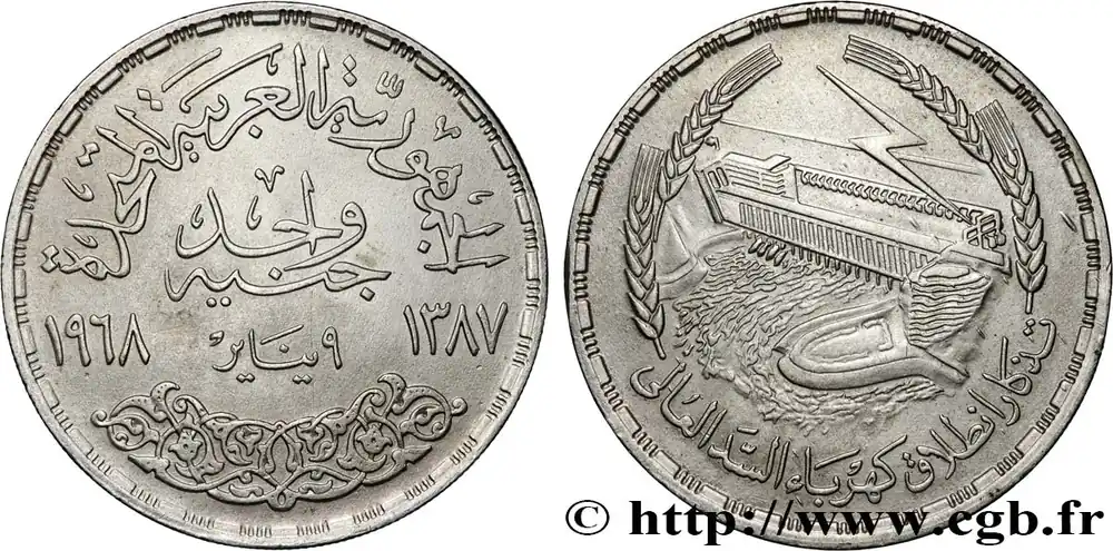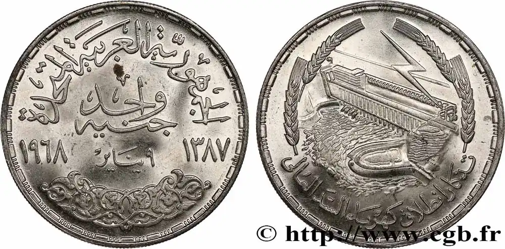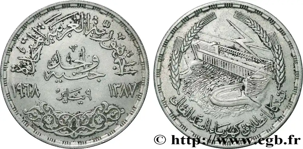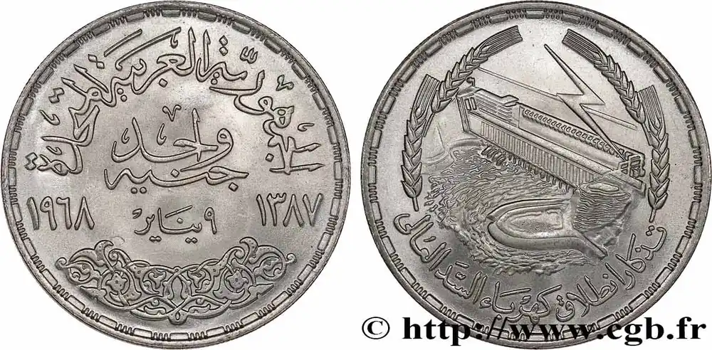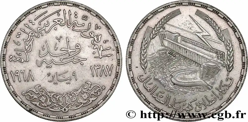 ÉGYPTE 1 Pound (Livre) Barrage du Lac Nasser à Assouan AH1387 1968 fwo_741964 Monde Prix Bas