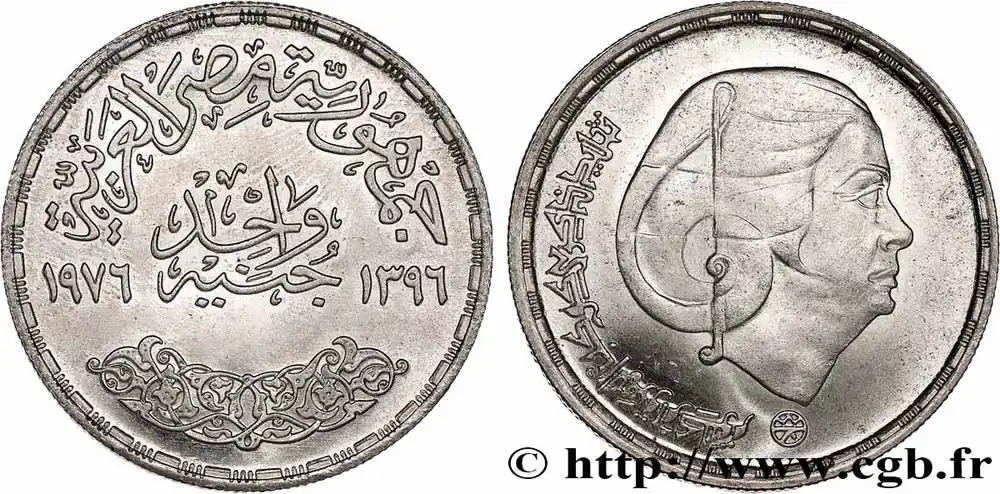 ÉGYPTE 1 Pound (Livre) frappe en mémoire de la chanteuse Oum Kalsoum AH 1396 1976 fwo_768350 Monde Affaire À Saisir