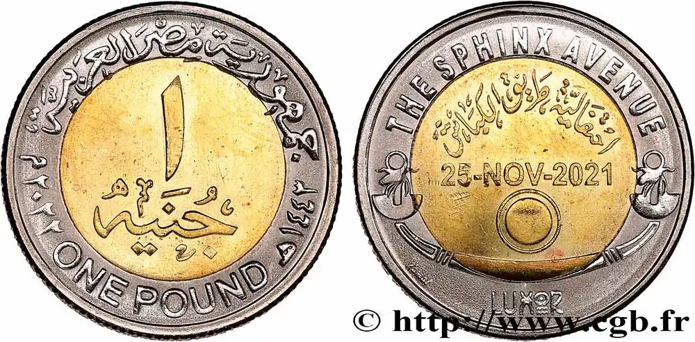 ÉGYPTE 1 Pound (Livre) réouverture de l’Allée des Sphynx à Louxor an 1443 2022 fwo_779180 Monde En Vogue