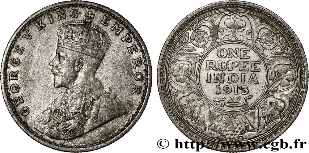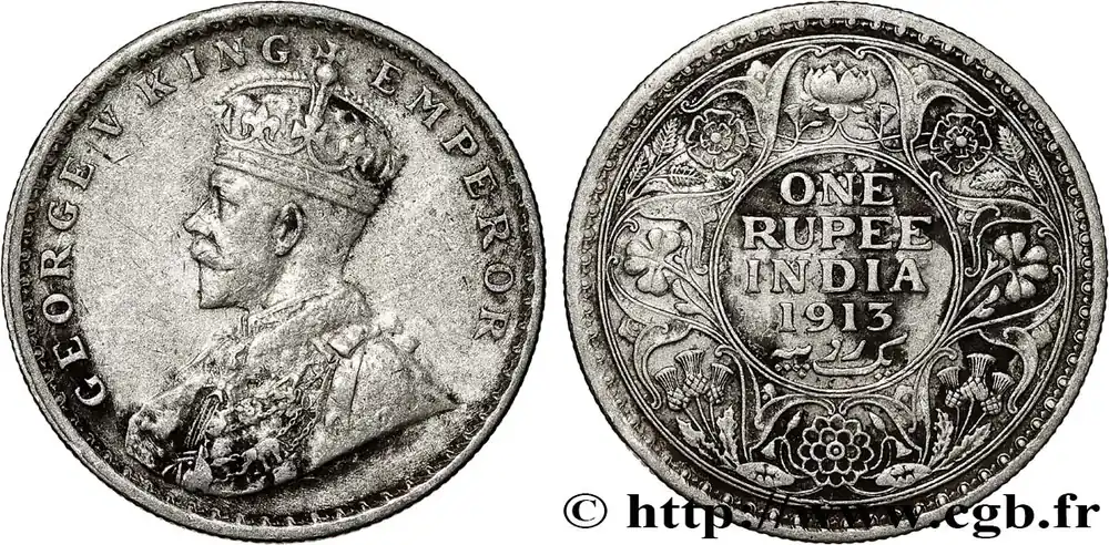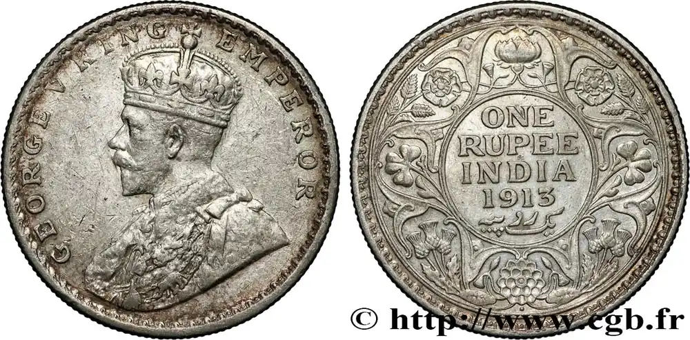 INDES BRITANNIQUES 1 Rupee (Roupie) Georges V 1913 Bombay fwo_790983 Monde Pas Cher