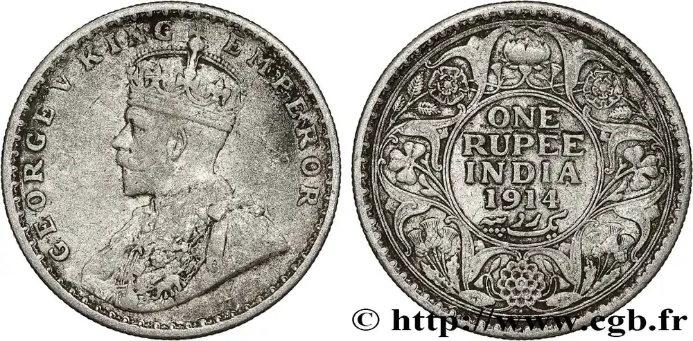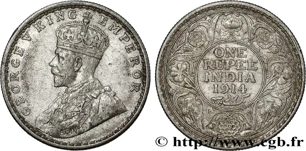 INDES BRITANNIQUES 1 Rupee (Roupie) Georges V 1914 Bombay fwo_790986 Monde Usine Directe
