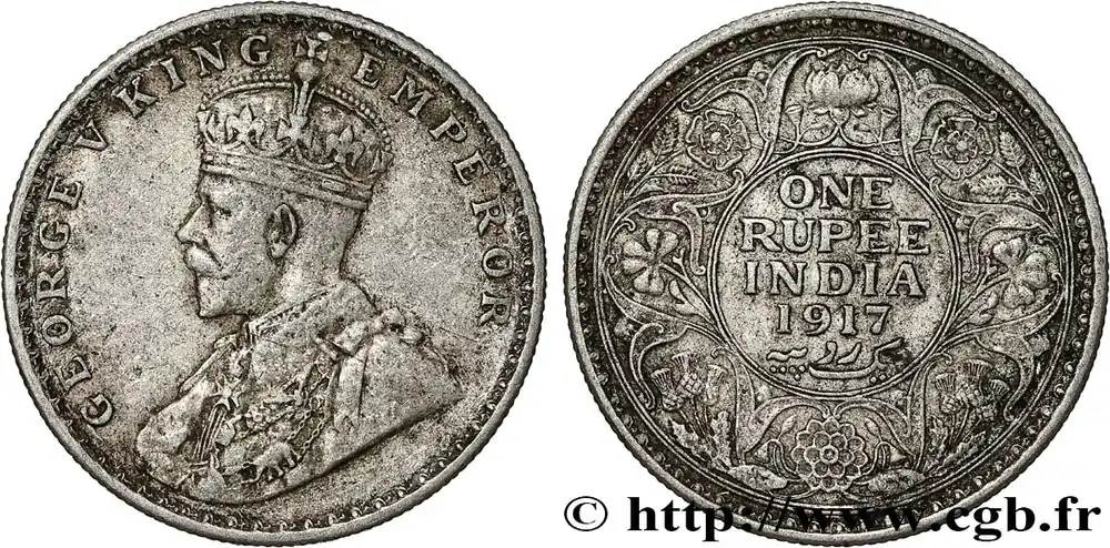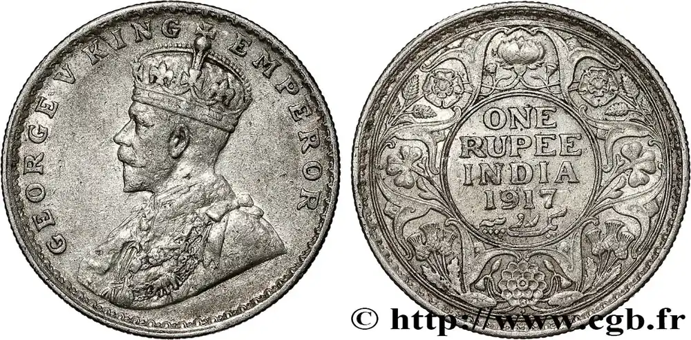 Achetez Aujourd’hui INDES BRITANNIQUES 1 Rupee (Roupie) Georges V 1917 Bombay fwo_791020 Monde