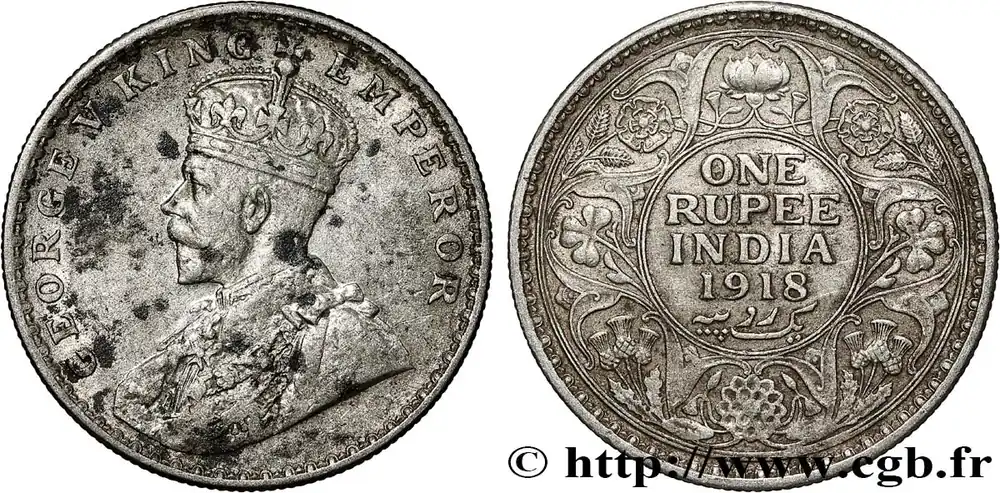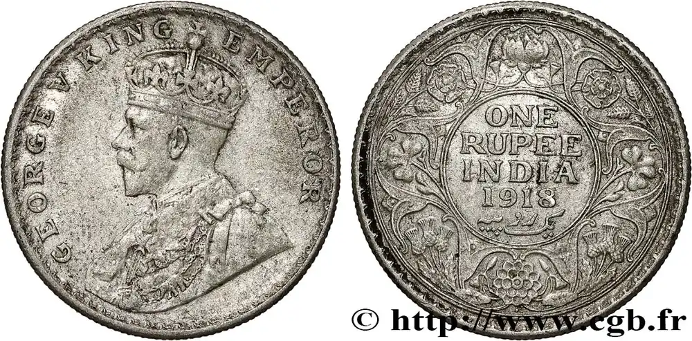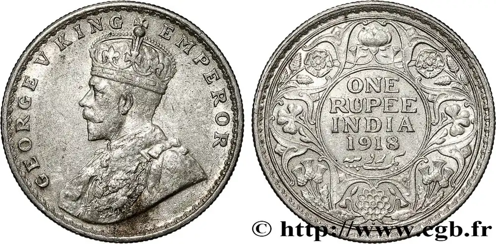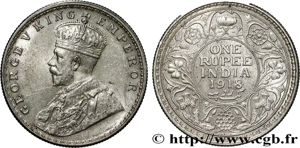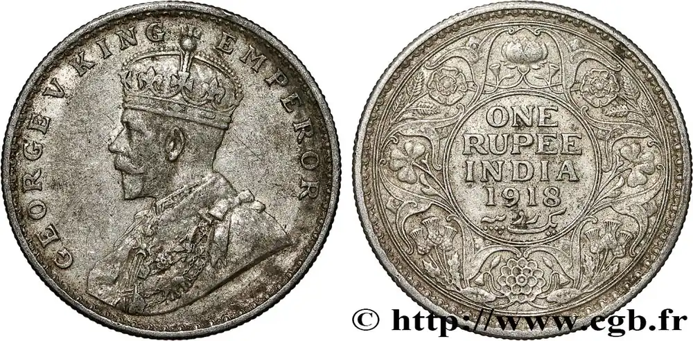 Acheter En Ligne INDES BRITANNIQUES 1 Rupee (Roupie) Georges V 1918 Calcutta fwo_791045 Monde