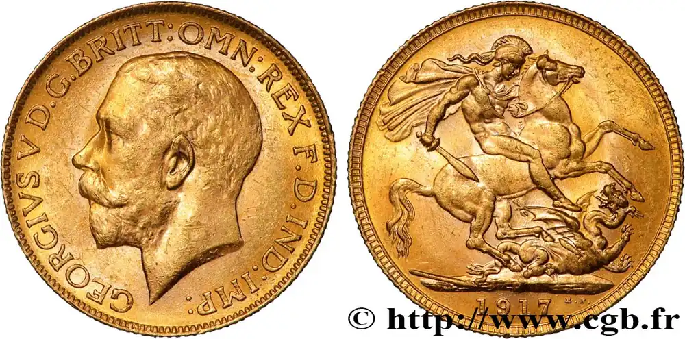 Fait Main OR, PALLADIUM ET PLATINE INVESTISSEMENT 1 Souverain Georges V 1917 Perth fwo_884621 Monde