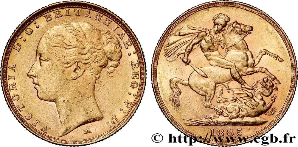 OR, PALLADIUM ET PLATINE INVESTISSEMENT 1 Souverain Victoria type écu couronné 1885 Melbourne fwo_823283 Monde Haute Qualité