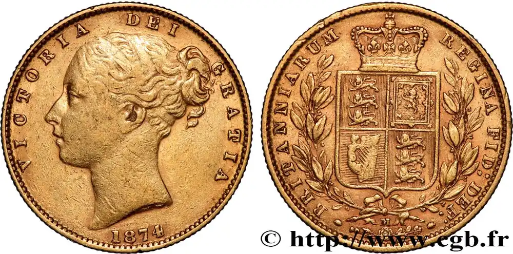OR, PALLADIUM ET PLATINE INVESTISSEMENT 1 Souverain Victoria type écu couronné 1874 Melbourne fwo_890419 Monde Meilleur Choix