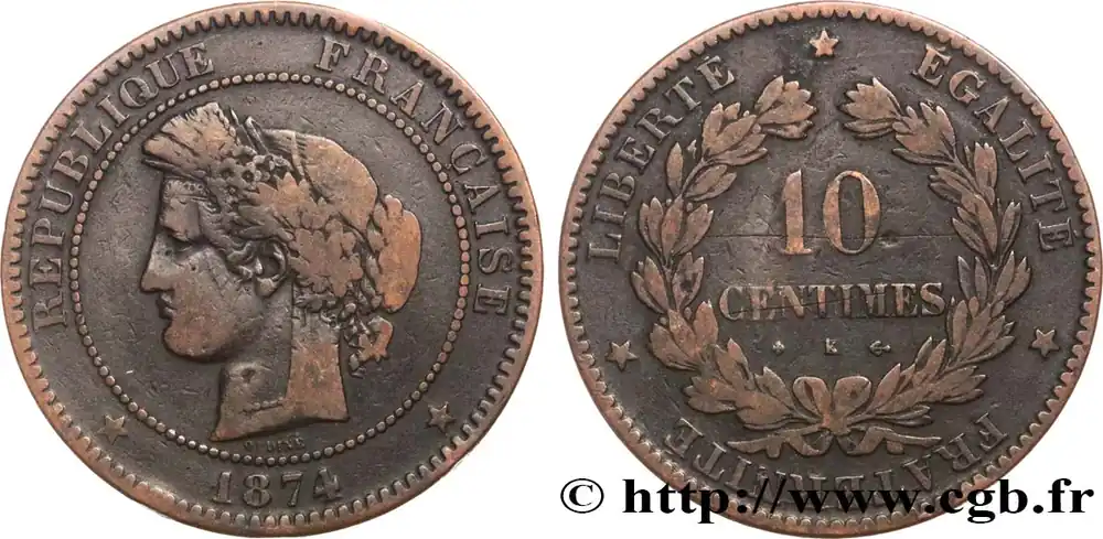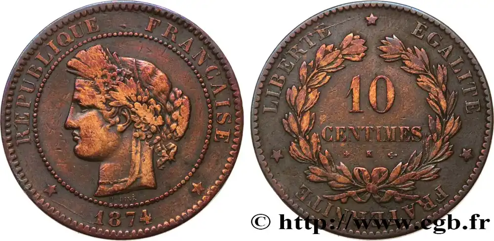 10 centimes Cérès 1874 Paris F.135/12 fmd_590935 Modernes Produit De Marque