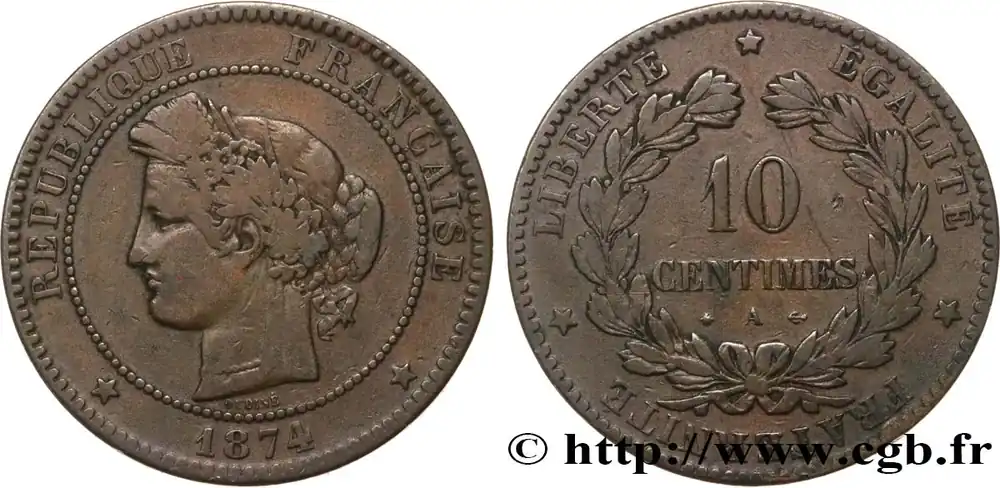 Haute Qualité 10 centimes Cérès 1874 Paris F.135/12 fmd_587330 Modernes