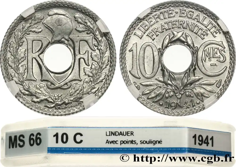 10 centimes Lindauer en zinc, Cmes souligné et millésime avec points 1941 F.140/2 fmd_604314 Modernes Expédié Aujourd’hui