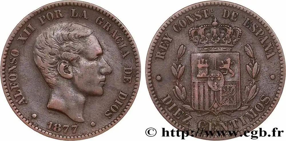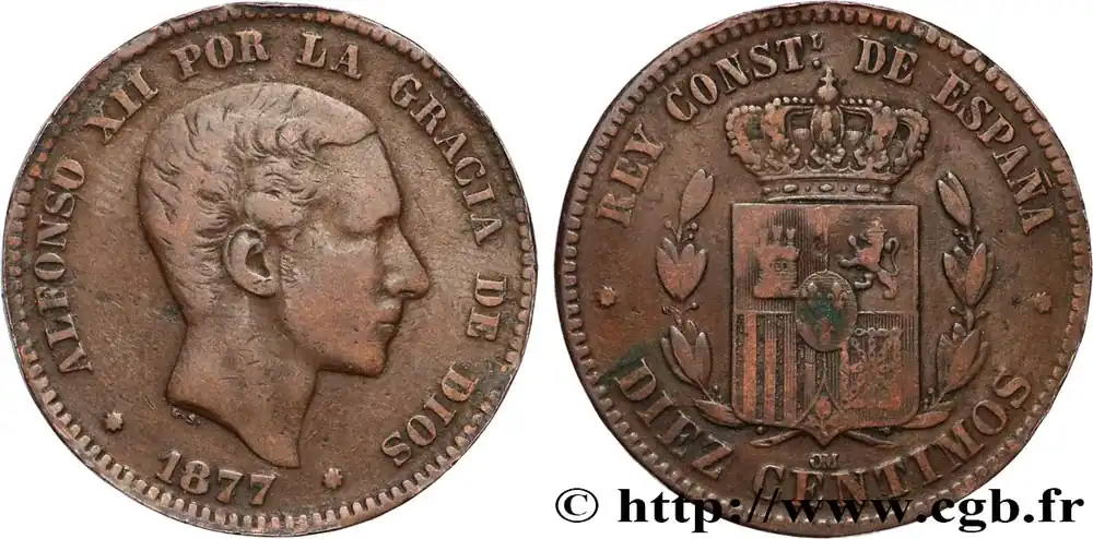 ESPAGNE 10 Centimos Alphonse XII 1877 Oeschger Mesdach & CO fwo_840184 Monde Produit De Marque