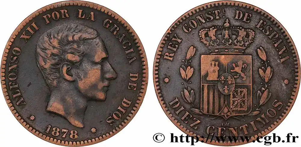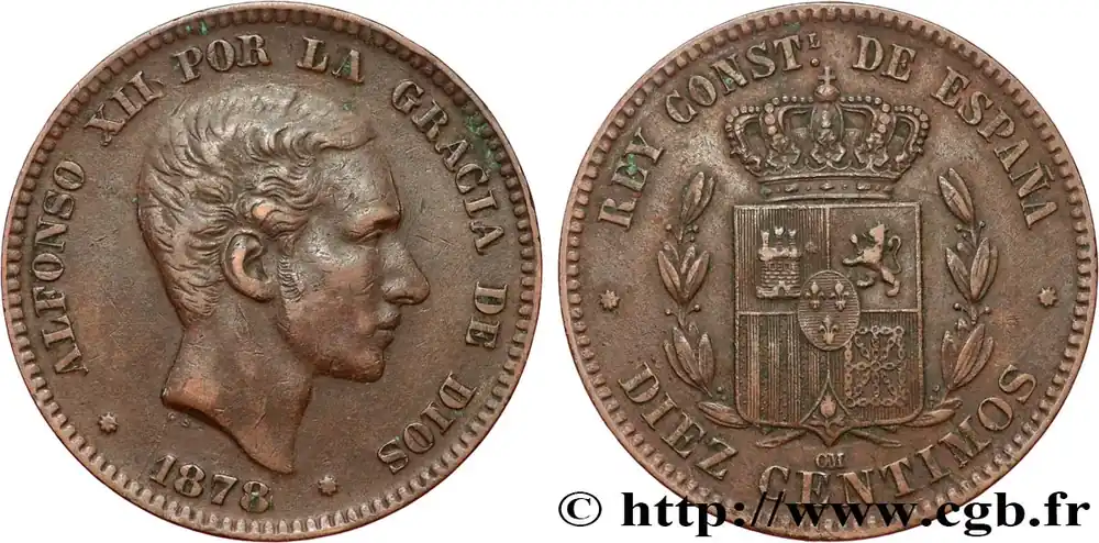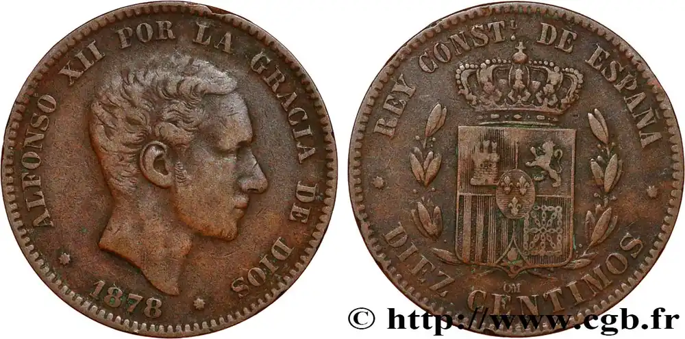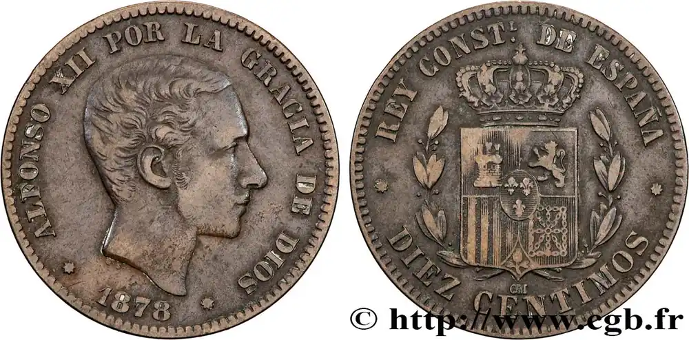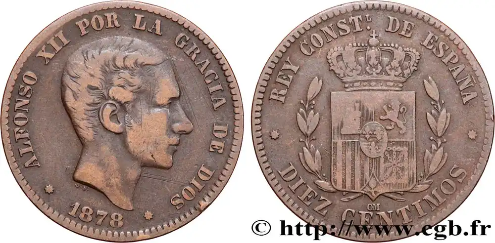 ESPAGNE 10 Centimos Alphonse XII 1878 Oeschger Mesdach & CO fwo_809204 Monde Top Vente