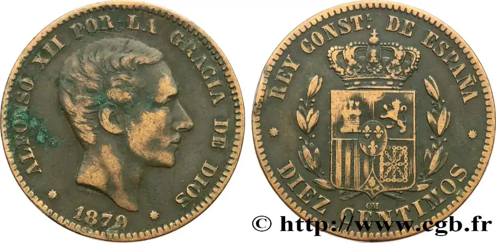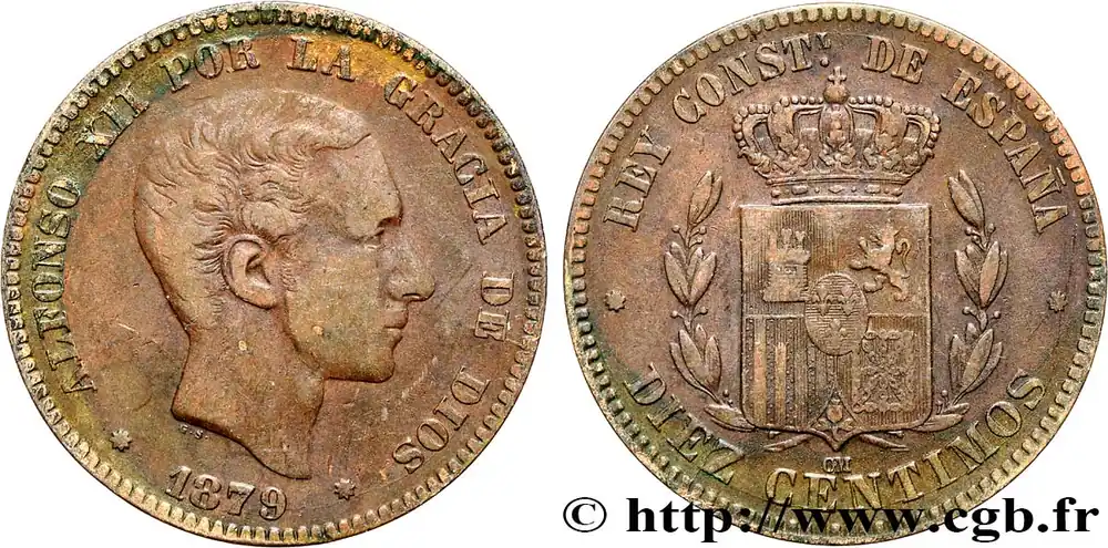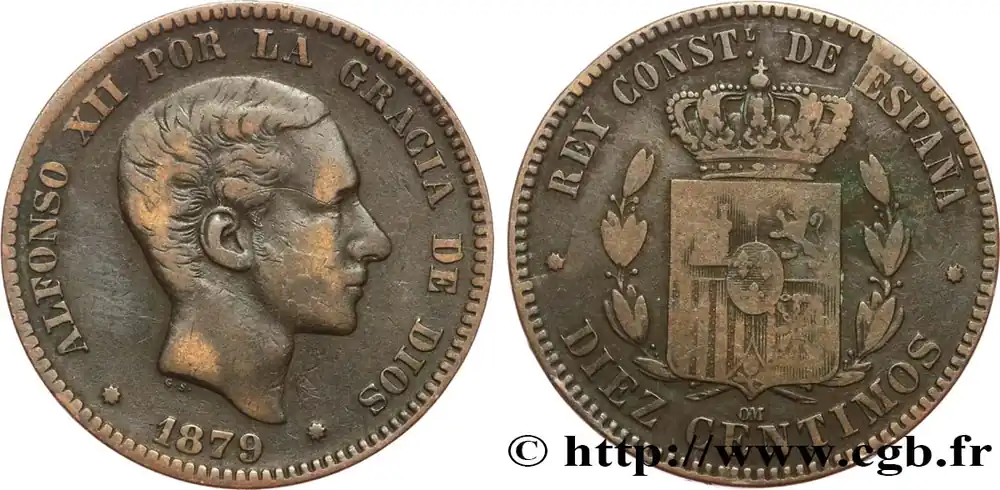 ESPAGNE 10 Centimos Alphonse XII 1879 Oeschger Mesdach & CO fwo_638495 Monde Authentique