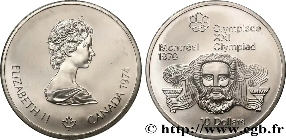 Haute Qualité CANADA 10 Dollars JO Montréal 1976 tête de Zeus 1974 fwo_838821 Monde