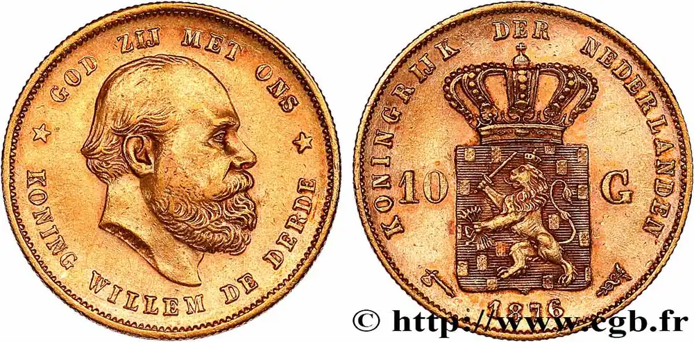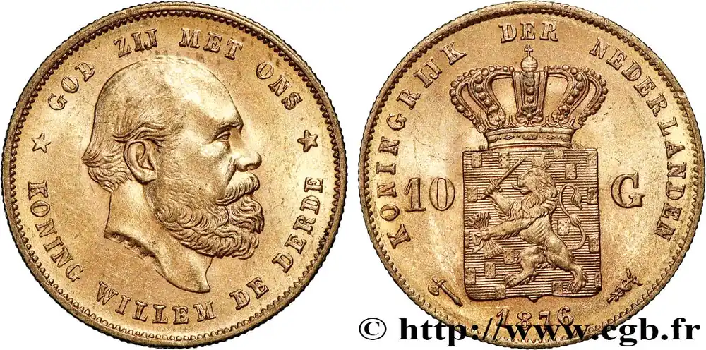 OR, PALLADIUM ET PLATINE INVESTISSEMENT 10 Gulden Guillaume III, 2e type 1876 Utrecht fwo_751373 Monde Super Prix