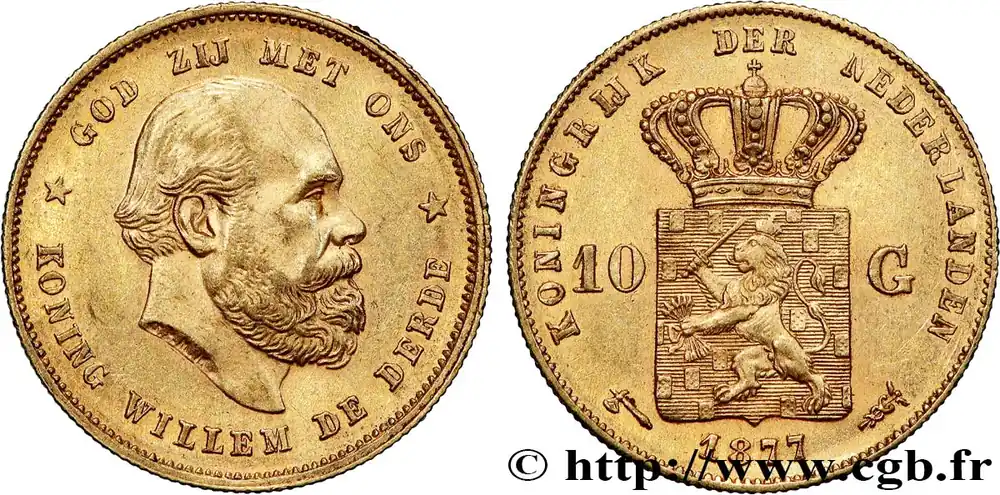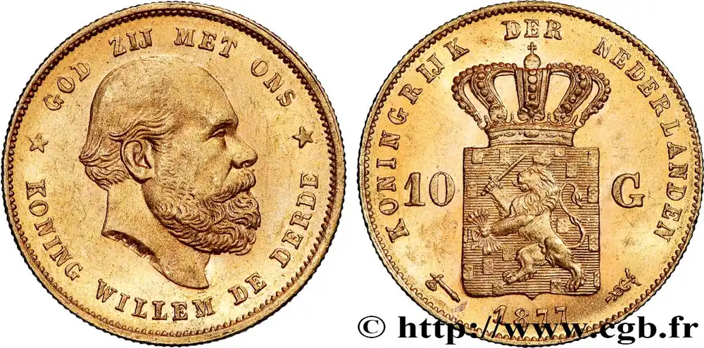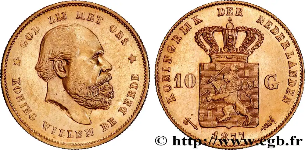 OR, PALLADIUM ET PLATINE INVESTISSEMENT 10 Gulden Guillaume III, 2e type 1877 Utrecht fwo_864286 Monde Dernier Modèle